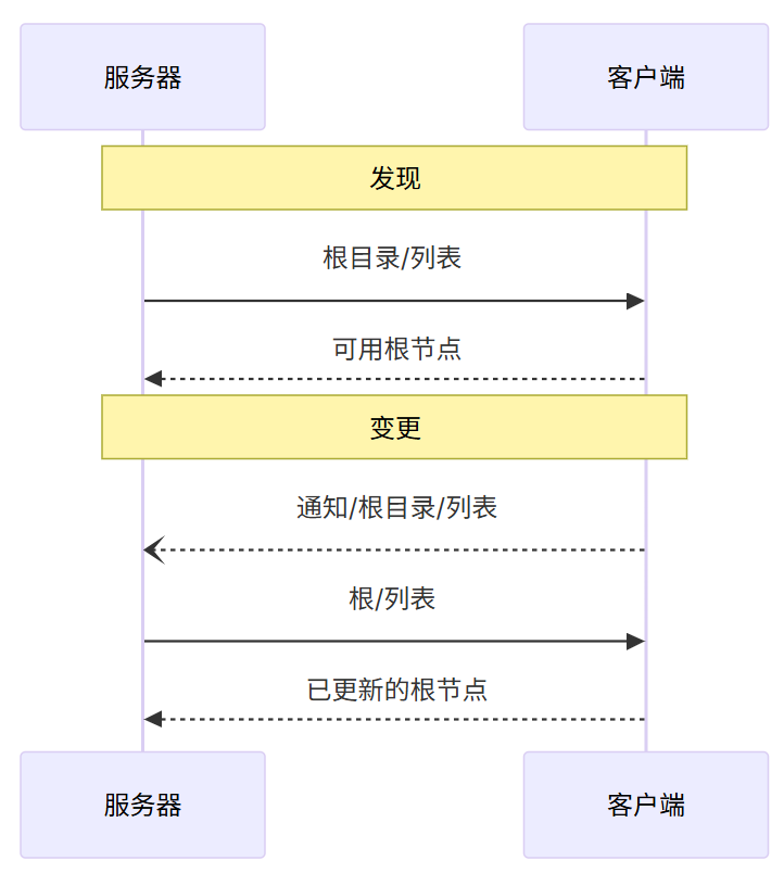 客户端 → 服务器:根列表变更通知(当发生变更时)