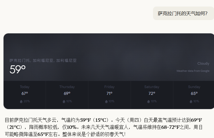 ⚠️ 说明:本示例使用美国国家气象局 API,仅支持美国境内位置。